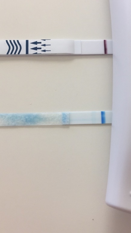 Тесты самые дешевые, но ранее тот что синий не полосатился никогда даже еле еле... он на 10мр а красный на 25мр хгч
