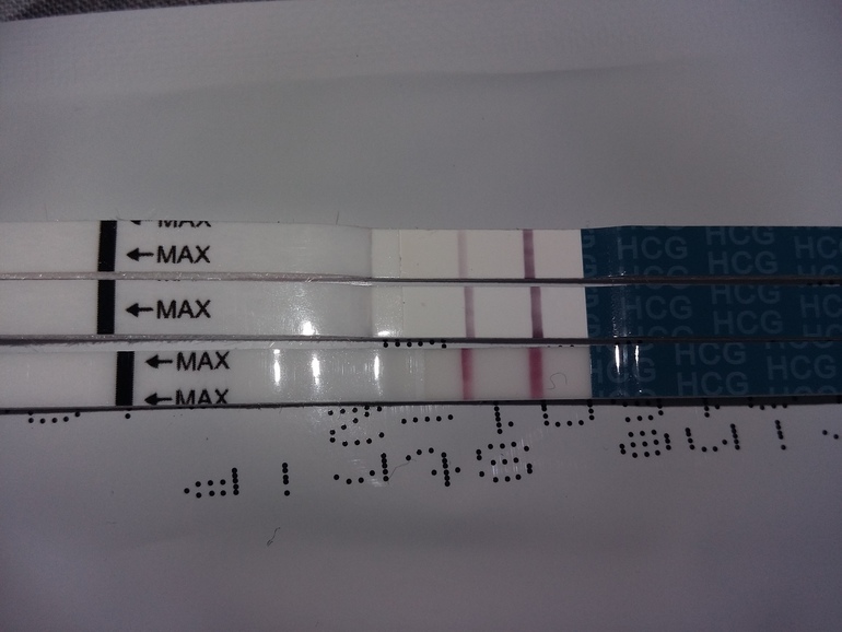 Ну что,сегодня 2 день задержки и я заканчиваю свою тестоманию. Полосочки сравнялись и смысла дальше делать тесты не вижу. Вот так неожиданно у нас получилася малыш, не представлчю пока,как буду справлятся с 4 детьми,а больше всего пугает мнение окружающих,но буду крепится и пытаться не нервничать. Если кому интересно могу рассказать про свои признаки Б,как я заподозрила за долго до дня Х. Всем хочушкам желаю скорейшего запузячивания,беременяшкам легкой беременности и здоровых деток. Мои тестики верхний за 2 дня до дня Х,средний день Х и нижний 2 день задержки.