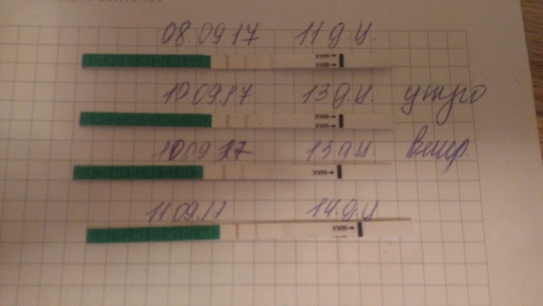 9-10 вроде как обе яркие. Сама замарочилась,решила проверить есть ли у меня овуляция, только я сделала, в календаре отметила и выкинула не собираю их. Сегодня только читала в нете что означает слабая вторая, мне еще 4 дня делать. Интересно почем у вас тесты, мы взяли 52 рубля 1 шт.