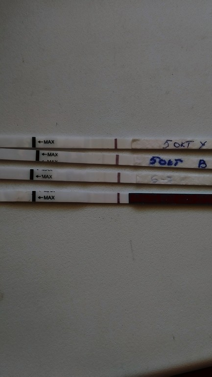 Ждем дня Х (Признаки беременности / Тесты)Вот и весь вопрос девочки! Почему этот гад не становится ярче, а последний даже как-то побледнее(( нижний сегодняшний, день Х сегодня. На хгч попаду только завтра.