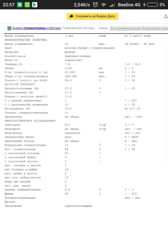 И правда. странное заключение. У моего стоит нормозооспермия при такой же сг. Правда, Морфология У него немного выше