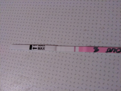 вот и у меня сегодня 25дц ) тест на овуляцию, рядом тест на б )))) но замочила я их вместе и сразу нашла информацию про ползущие полоски))))) пока гуглю, почему такие яркие полоски в конце цикла