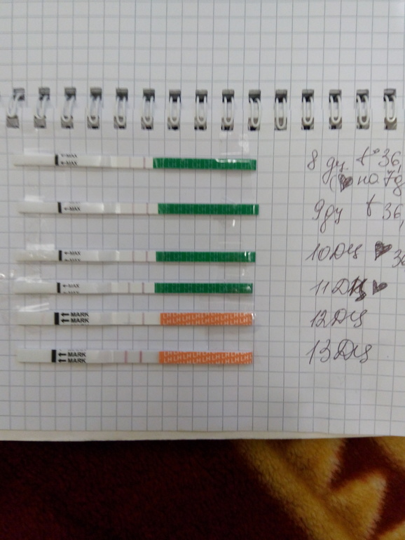 Хотя, как по мне , и на 11 дц - тоже полосочки яркие. Я читала, что наиболее эффективно, иметь открытый па день овуляции и за 2 дня до нее. И можно через 2 дня после нее.