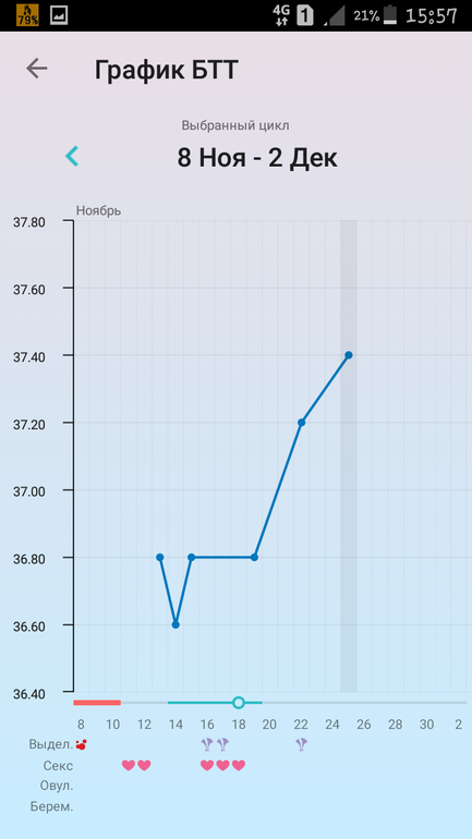 А с вчерашнего вечера тошнит меня пипец. А рвоты нет. Базальную t я мерить подзабросила по этому график такой не четкий. Сегодня t 37.4