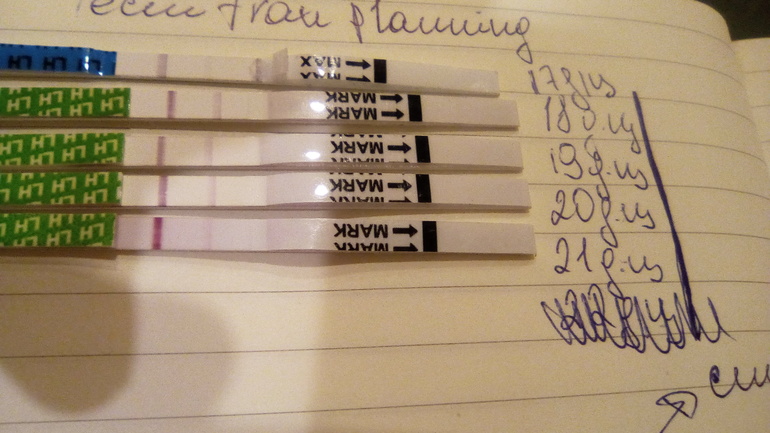 Овуляция( тесты на овуляцию)Всем привет, я тут у вас новенькая)вот решили попробовать заделать маленького, начиталась про тесты на О, попробовала, и ни фига не поняла, была она или нет, или будет)цикл стабильно 33-35 дней, па 9,11,13,14,16,18,21 ДЦ, сейчас 22, бт не измеряю, слишком хлопотно, с 13дц болит поясница,с 21дц чувствительная грудь, 16 ДЦ характерные обильные жидковатые выделения...(качество фото не очень, камера говно)спасибо за ответы заранее:*