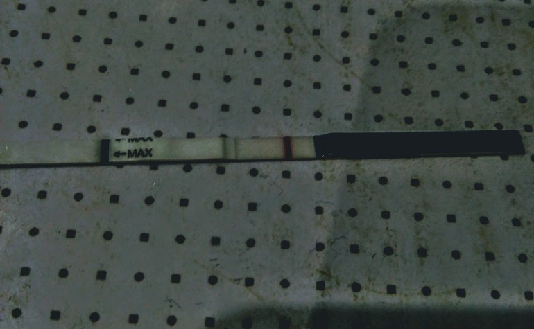 Сделала эви тест, вечером, постоянно хожу в туалет, поэтому не знаю, точный ли получился результат. Что-нибудь видите?