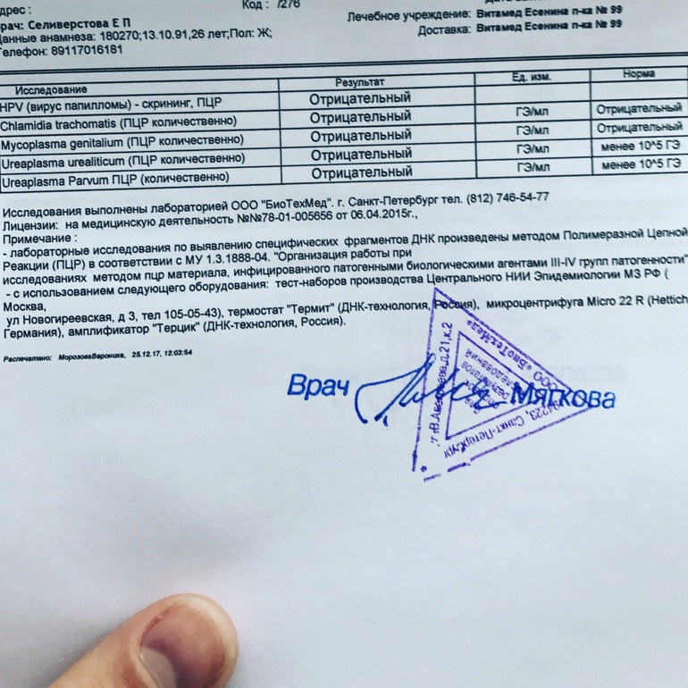 все отлично - вирус папилломы человека - у вас отрицательно - т.е. ни вы ни родные не болеете простудными заболеваниями на данный момент...Хламидии,уреоплазма и микоплазма - отрицательные... Все классно,так держать.