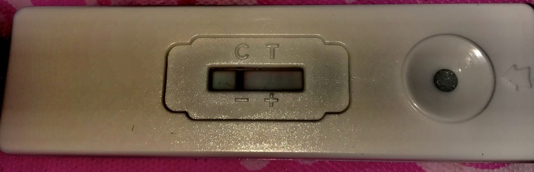 Что-то размытое на месте тестовой полоски проглядывается) Может полоску размыло, а может и реагент🤔 Переделайте обычный кассетный тест, эви например или мамачек, а этот странный какой-то.. Но в любом случае удачи!