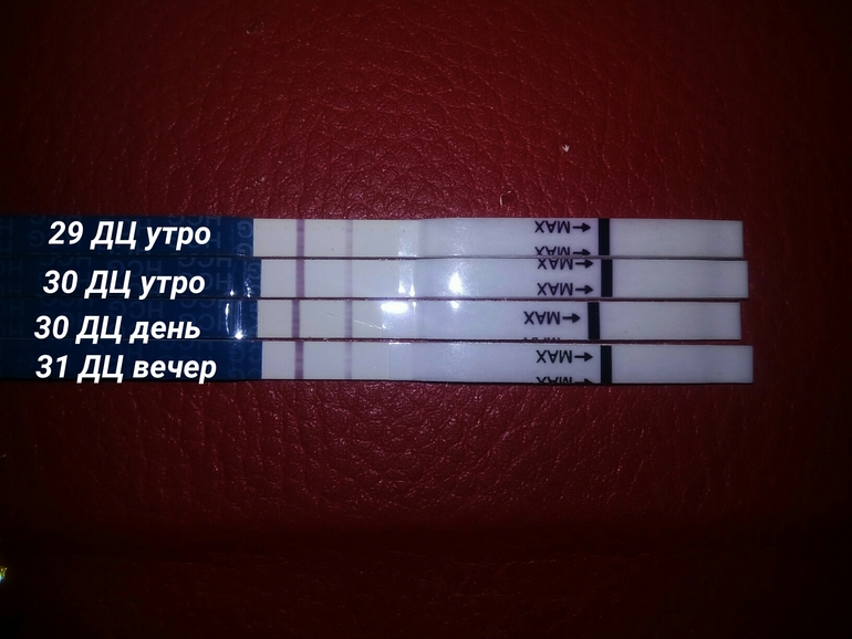 О, вспомнила себя :) точно также делала тесты, ярчало, ярчало в любое время суток - а тут бац - и слабее вчерашнего. Наревелась, уверенна на 100%, что все сорвалось, живот сразу болеть начал. На утро переделала - поярчало как нужно :) Больше с того дня тесты не делала. Вот вам пример, который меня немного поддержал - тесты девочки, которая уже родила, все хорошо. Верхний на 26ДЦ, нижний на 27 ДЦ