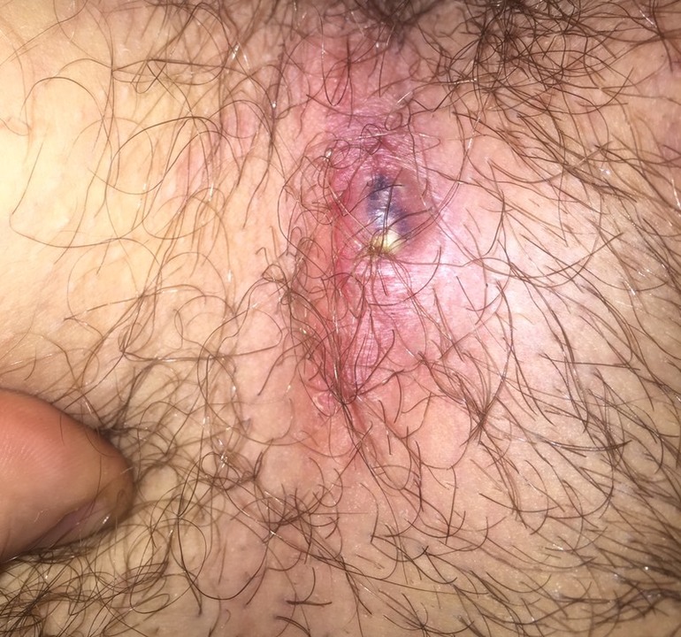 Мазь вишневского хорошо ,но в данной ситусции не совсем то...левомеколь лучшев таких случаях.( похоже волос врос)...она и вытянет и антибиотик в составе обезоразит....не переживайте все скоро пройдет