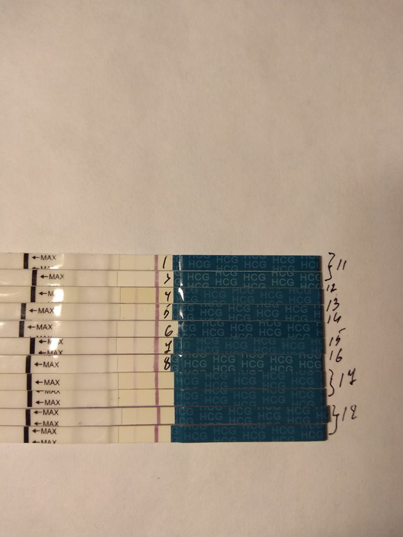 Всём доброе утро. Опять что то пошло не так. Напомню в понедельник 16 ХГЧ был 82.9. Хотела сегодня сдать в динамике, но смысла нет, тесты совсем побледнели. Знаю что тесты в динамике не смотрят, но сегодня совсем бледный, думаю что ХГЧ падает. Ну что жизнь на этом не заканчивается, значит будем стараться дальше. Всём спасибо за поддержку))
