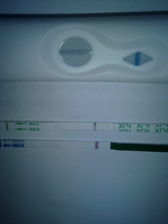 ксеня, не расстривайся раньше времени, вот один в один было, даже хуже. замочила один тест на 9 дпо и там призрак призрака что никто не увидел, на следующий день замочила еще раз и он был ааааабсолютно отрицательный, я так же расстроилась и уже решила что пролет,,но через часа 2 сделала ещё один, а таааам, глазам не поверила. вот смотри. а как раз на утреннюю мочу у многих слабее полоска, а если хгч еще недостаточно, так и вообще могут быть отриц, как у тебя