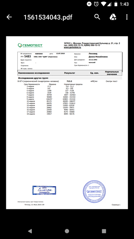 Вчера был 8 дз. Сдавала хгч.Гемотест.713.