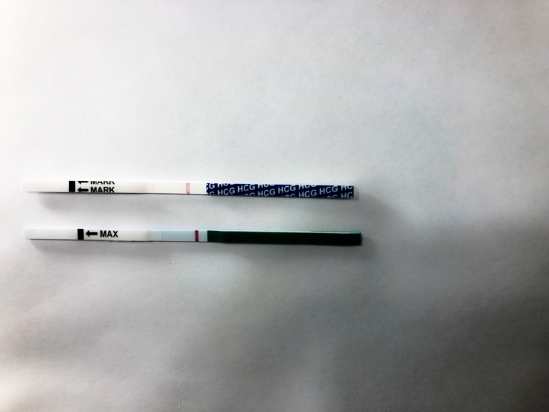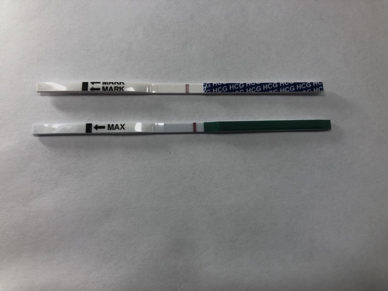 На первом фото на нижнем тесте вижу розовую вторую полосочку))))