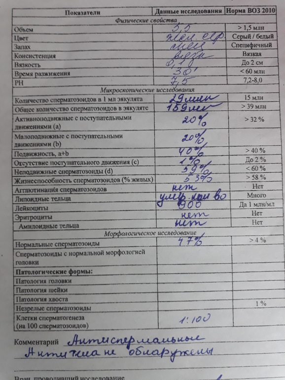 Спермограмма хорошая, только перездайте морфологию по Крюгеру. Этот анализ не информативен, у моего 72% было правильных, а вот пересдали по Крюгеру там 9%, что тоже норма. Да и врач сказал, что это нереальная морфология и верим только Крюгеру.