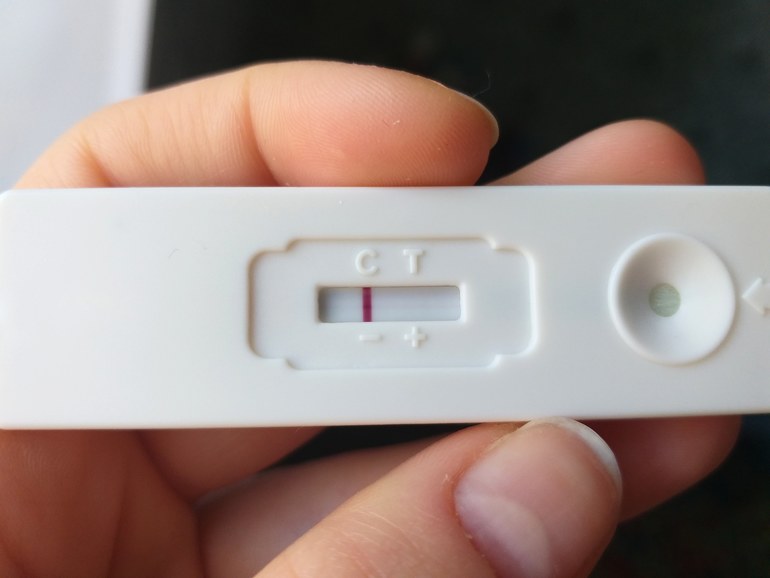 Я вижу белую полоску на месте тестовой, а вокруг нее розовый ореол. Странно...