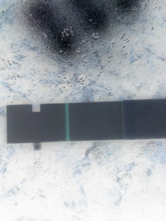 Боюсь что это полоска от нанесения антител, этот тест лучше не вытаскивать из футляра, ident сильнее виден, но может и начало всех начал, удачи вам!!!