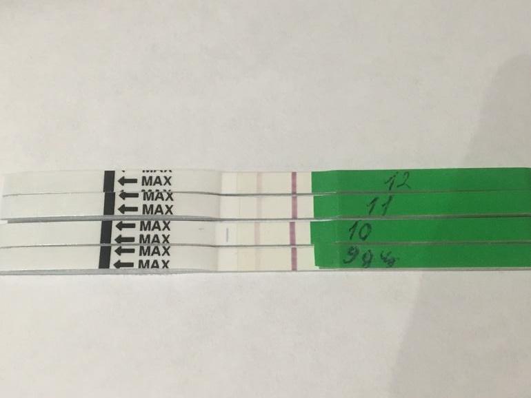 У меня цикл 25 дней,делала тесты с 10 дц, 3 дня были бледные и не сразу появлялись,а спустя минут 7. На 4 уже ярче всех дней, вот на пятый сделала и прям сразу сравнялись полоски по цвету. И по ним я поняла,что овуляция у меня на 15 дц,а я всегда думала,что на 12.