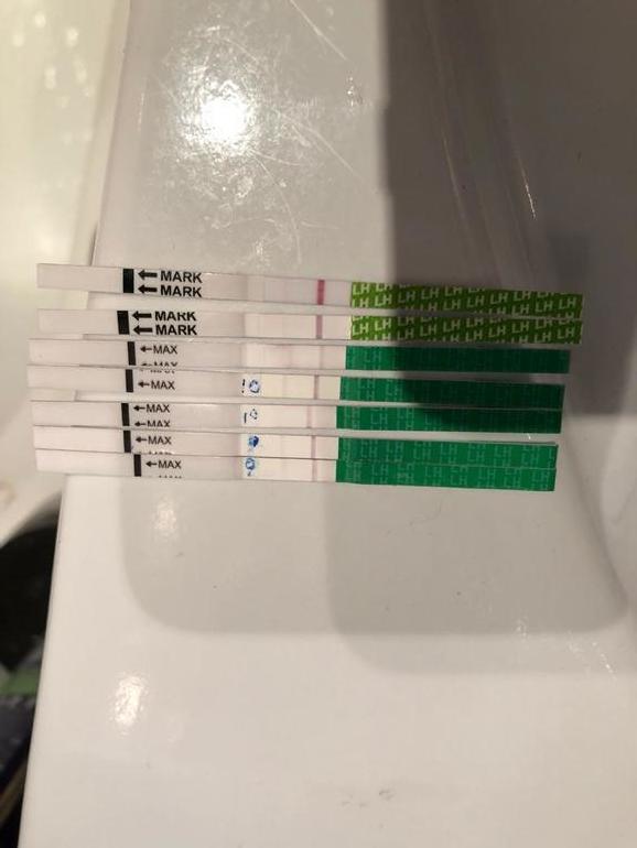 Овуляция( тесты на овуляцию)Девочки, вот с подругой сделали тесты. С 9 д.ц.начали 2 раза в день. И не поймем было или нет, все полоски бледные какие-то