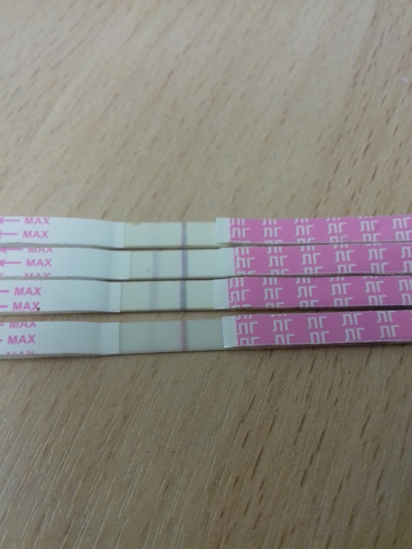 Овуляция( тесты на овуляцию)Вот уже 3 дня мои тесты на о.выглядят вот так. Сверху вниз-в 7,11,15 и 19 часов.