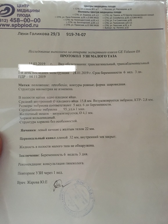По М. Срок 6 недель и 3 дня. Сегодня ходила на Узи послушать сердечко. Оно бьется, но доктор сказала, что пульс невысокий - 95 ударов в минуту. Исход может быть как хороший, что сердце разгонится, так и плохой-это может быть началом ЗБ. Через неделю повторить узи снова. Результат прикладываю. Я очень расстроена, надежда гаснет. Не знаю, как собраться
