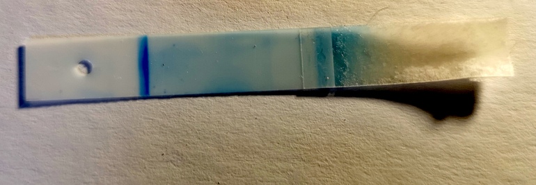 А, ну тогда вы рановато сфоткали, краска ещё не до конца прошла по тестовой полосе. Вопреки всем инструкциям, вторую полоску можно считать за правду, если она остаётся после высыхания, у вас вторая полоска хорошо виднеется)