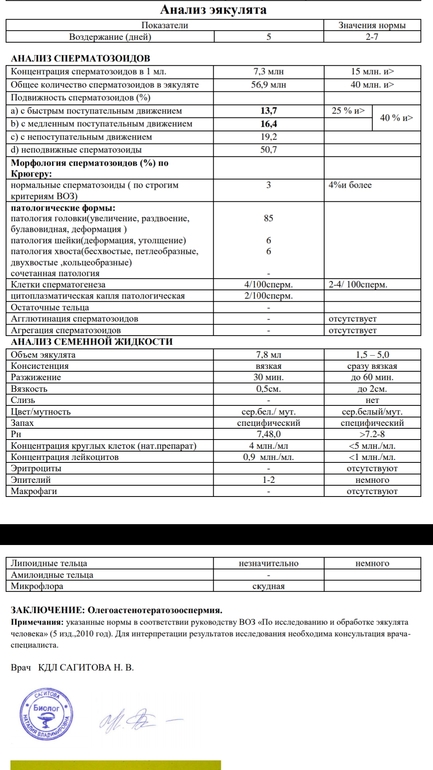 У нас очень похожая ситуация, поставили тератозооспермию на грани олигозооспермии и Б наступила. (СГ была сдана в победном цикле), правда зб, но это другая уже история.... Для // хватает и одного бойца! Главное чтоб дополз ))) к толковому врачу обязательно, хочу вам просто сказать, что шансы есть, не теряйте надежды 😉