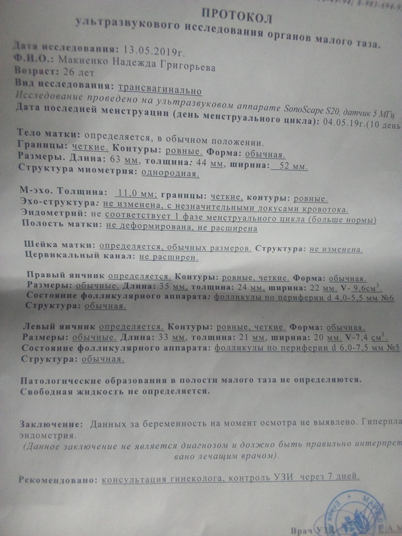 ФолликулометрияСъездила ко врачу и на узи. И нихера мне не ясно.беременности нет нигде,ну на время исследования,как сказа врач. Гиперплазия. А почему тест с "сомнительной " полоской так и не плнятно.врач взяла мазки,ничего так и не назначила. Кроме обследования. Через неделю на узи опять. Конечно врачи не боги... совсем даже... но легче от поездки к врачу мне не стало. Прилагаю заключение. Предыдущий пост в дневнике,если кому интересно.