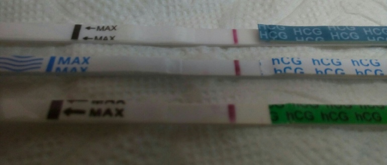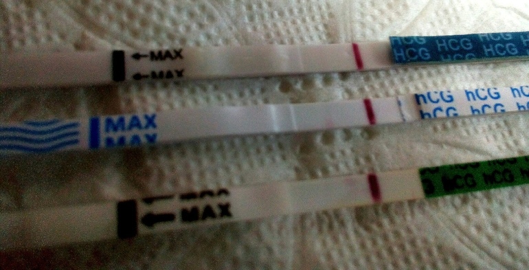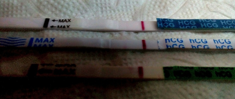 Ждем дня Х (Признаки беременности / Тесты)Посмотрите, пожалуйста. Жена брата мужа (и по совместительству подруга) планирует уже давно, у нее СПКЯ, в ноябре того года удаляли две миомы и кисту, было три стимуляции клостом и даже 3 месяца на Джесе сидела. Под впечатлением моего неожиданного состояния решила попользовать остатки моих тестов. Я на всех вижу бледную розовунькую, а у нее истерика - она то видит, то нет) Кровь сдать не предлагайте, одну истеричку уже отвозили на ХГЧ, Вторую пока везти некому, так что остается куча тестов и надежда на зоркое зрение) Нижнее - обработанное, мне кажется сайт съедает четкость полосочек. Было бы здорово оказаться примерно на одном сроке и в одном положении, а то у меня все подружки уже с детками) верхний эвик из голубой пачки, потом ю тест, нижний - я родился. Электронного нету - на себя истратила(