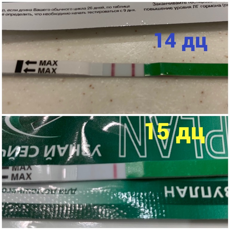 Возможно овуляция уже произошла. У меня на 15 ДЦ вечером тест показал 2 жирные полоски. Утром пошла на УЗИ,а врач сказал,что овуляция уже была,есть жёлтое тело. И на тесте была уже слабая вторая полоска