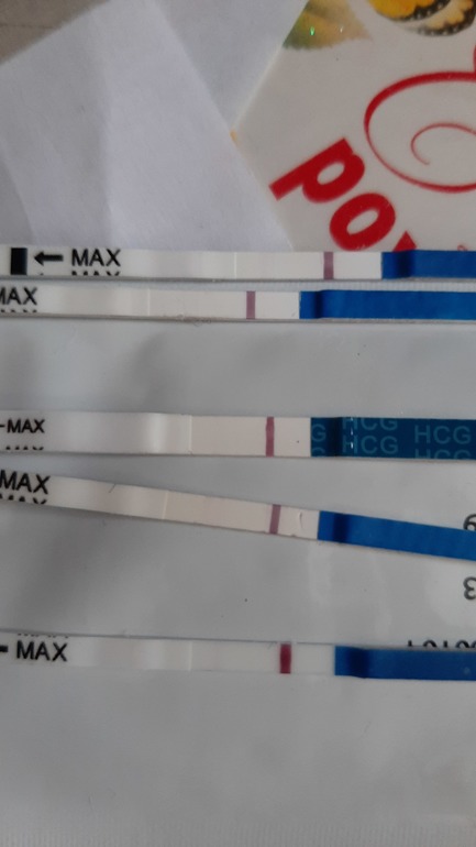 Ждем дня Х (Признаки беременности / Тесты)Девушки! Посмотрите,есть что-то? Все тесты Lady Chack. 3й сверху эвитест. Последний сегодня утром сделан. Есть динамика? Овуляцию не отслеживала, но приблизительно 4-6августа(болели яичники. Цикл может быть и 34 дня.