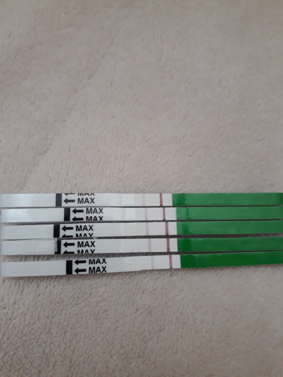 Пока ещё не было, это и означают. У меня такие тесты обычно, то ярче, то бледнее, зависит от количества выпитой воды, от реагента тоже. Но когда ярчает на О, даже если не дотягивает до контрольной, это не спутать.