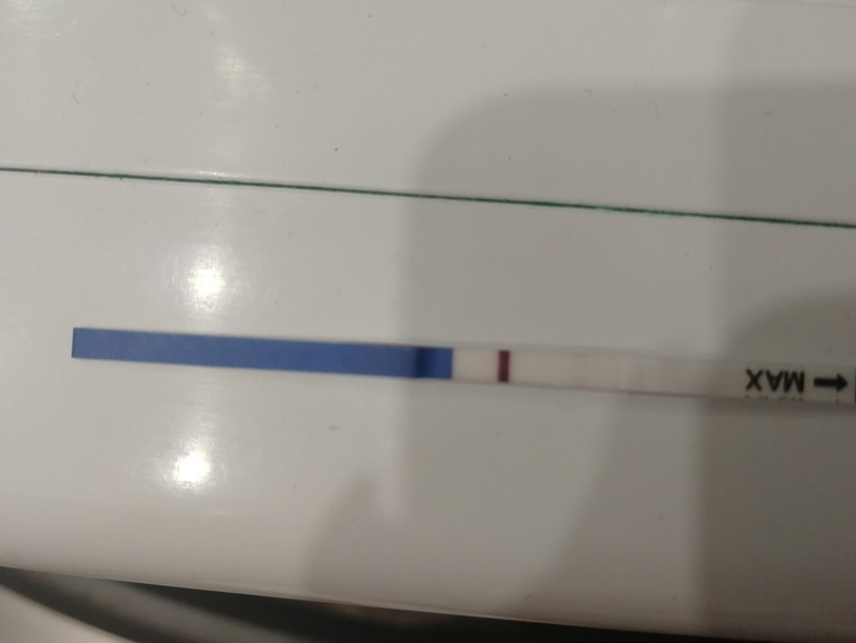 Просто тут я вижу белый след от места тестовой полоски, а от нее в строну стек реагент этот широченный , вы или перемочили или сам тест такой... Полоска должна быть тоненькая тем, где сейчас белый след.