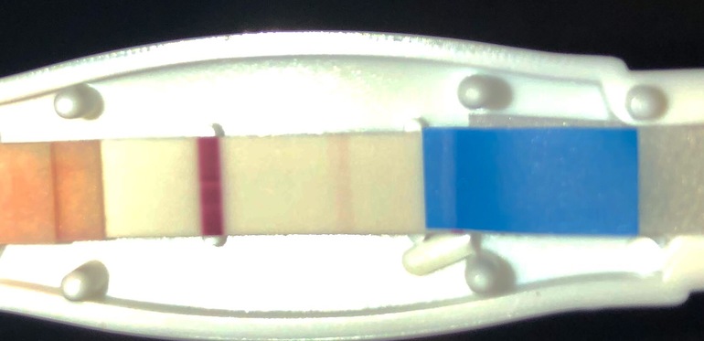 Подскажите, это реагент или такая полосочка из-за того, что только 10 дпо? Даже разобрала тест и добавила контраста, что бы было виднее (на 1 фото)