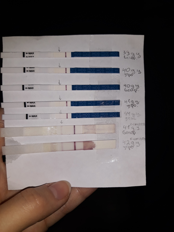 День Х наступил!Всем привет! Мой обычный цикл примерно 40 дней, сейчас 42день, начала делать тесты с 39 дня. Первые тест mamacheck , 2 последних femitest струйный. Из признаков: грудь чувствительная, когда встаю с кровати в глазах звезды, немного ноет поясница, температура тела 37°. Беременность желанная, очень хочу чтобы была беременность. Вторая полоска призрак или уже хорошая?