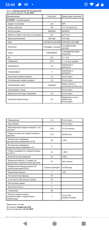 А вот остальные показатели под сомнением, потому как даже 1мл нет, профукал ваш муж)) а это важно.