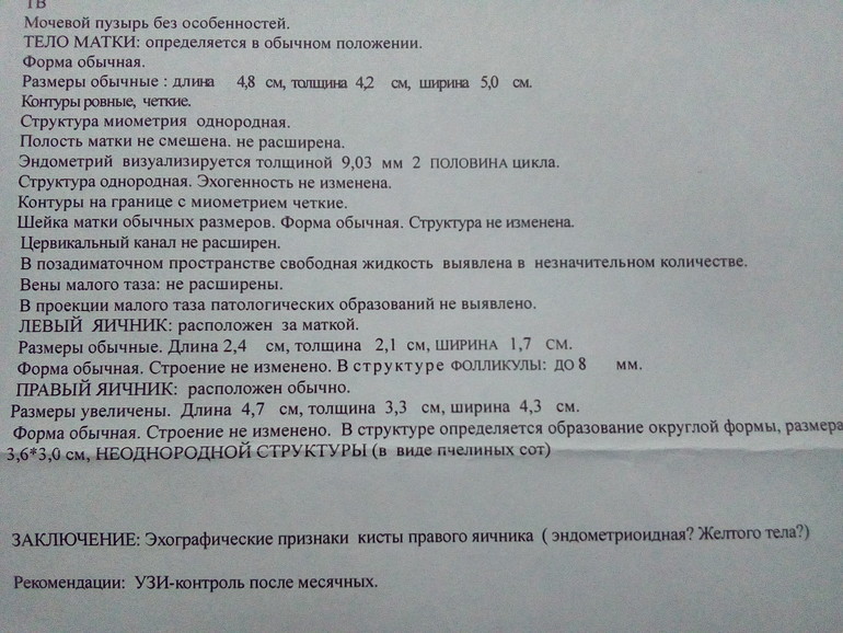 В заключение написано, что киста, и не факт, что желтого тела. Меня бы это насторожило.