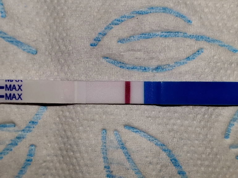Лучше тесты разных фирм делать, у меня один тест показал такую полосочку а другой намного ярче)