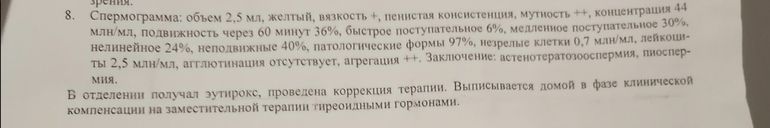 у нас было астенотератозооспермия,за 3 года первый раз стало нормозооспермия и муж заболел с температурой.На мужское здоровье это влияет