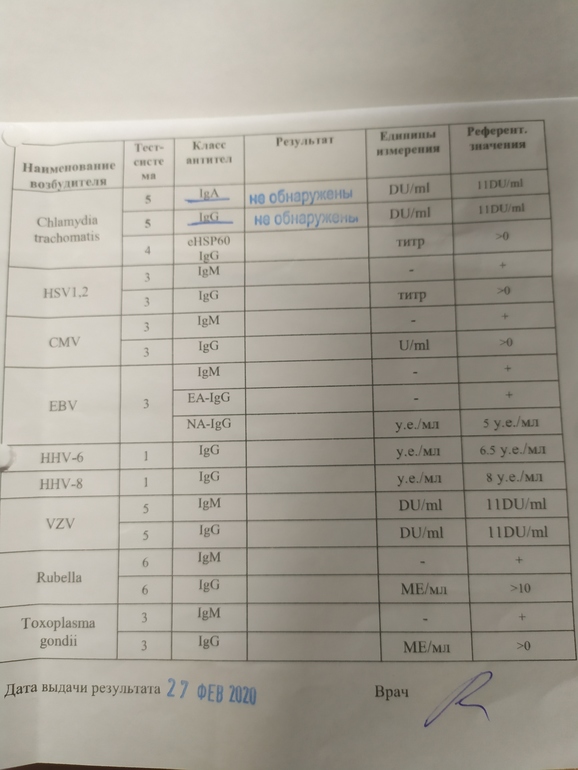 АнализыПомогайте, мой разум уже не справляется, что думать не знаю!!! Ситуация такая, планируем длительное время, сменила нескольких врачей. Около года под наблюдением у РЕ. Последние два цикла ей не нравилось по УЗИ какие-то вкрапления на эндометрии. Сказала, что подозрение на какой-то воспалительный процесс в матке. И понеслось, по новой, куча сданных анализов, в том числе и на скрытые инфекции... И вот результаты, сказать, что я в шоке, это не сказать ничего... В одной из граф расшифровок выявлен хламидиоз в отдельных клетках. Это как??? Откуда??? В жизни не было ничего подобного. Врач сказала, что это не диагноз, а под вопросом. Но воспаление, говорит есть, возможно на фоне этой инфекции. Назначено лечение на 10 дней, потом пересдача анализа через две недели. Приехала домой... правильно... тут Остапа понесло...поругались сильно с мужем, я на эмоциях естественно. Хотя доверяю человеку во всем, и уверенна в нем. Понятно что он пойдет к врачу и со своей стороны сдаст все, что необходимо. Но вот объясните мне, как, как такое может быть, что во всех расшифровках ничего не выявлено, а только в одной строчке вот так написано. Может кто сталкивался, или разбирается в этом всем. Девочки, только по существу, самой 40+, но с такой хренью первый раз сталкиваюсь.