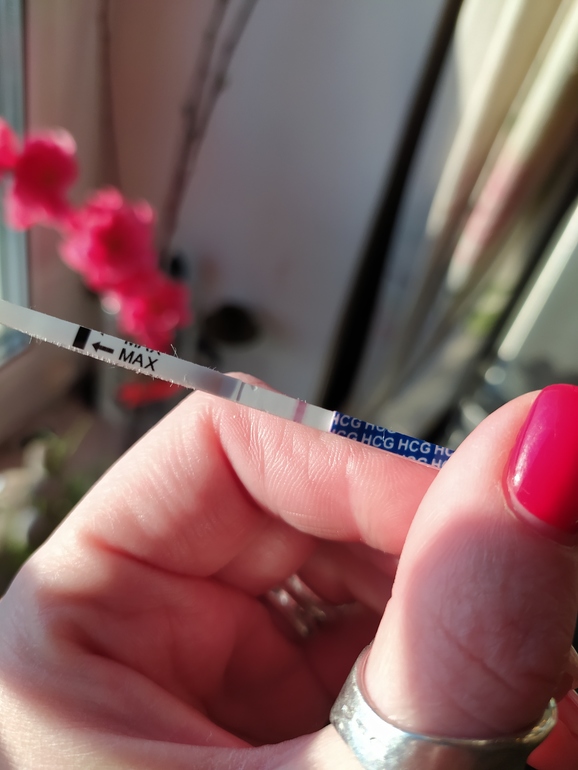 Я утром на 10 ДПОуже сделала Эви. Смотри: это тормознутый(😅) аттест на 9 ДПО(имплантация была вечером 8) а это утренний Эви. Полоску в реале видно очень хорошо, проявилась одновременно с контрольной.