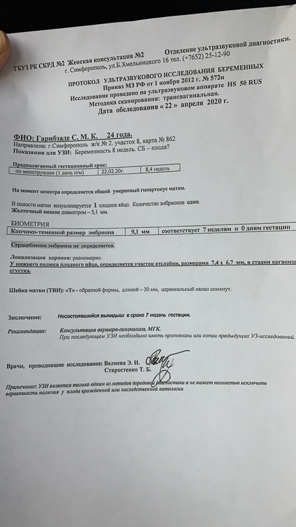 Вот Узи прикрепила которое делала 22 апреля в жк просто на контроле,23 в пц сделали ещё одно Узи ,но его на руках нет ( единственное помню что утр был 11,6 ,сердцебиение ещё на 7 неделе отставит остановилось ,до этого было 110 ударов((((