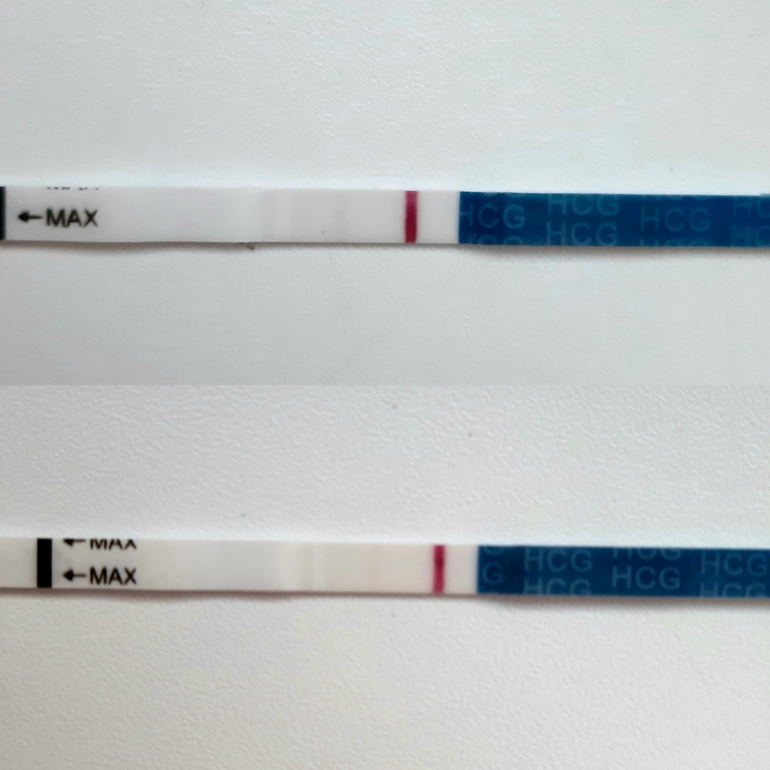 Замучила тестик и похоже действительно днём тесты ярче показывают, с чем это связано не понятно, но факт остаётся фактом. Конечно он поярче чем вчерашний утренний, но не на столько как дневные🙈😂😂😂. Ну будем надеяться, что это просто тест тупой и с крошкой все хорошо.