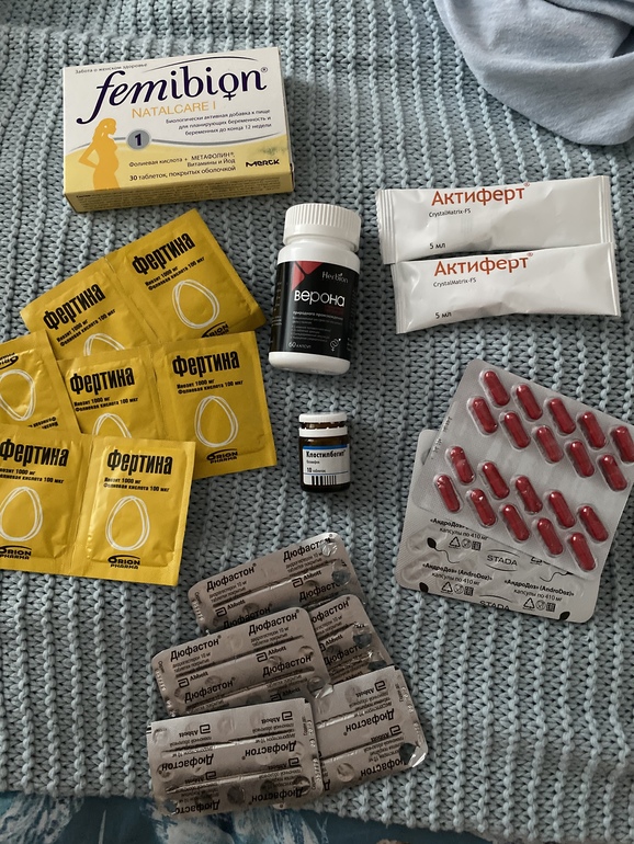 Дюфастон - пластины от новой пачки и одна от предыдущей (сожрато несколько таблеток)