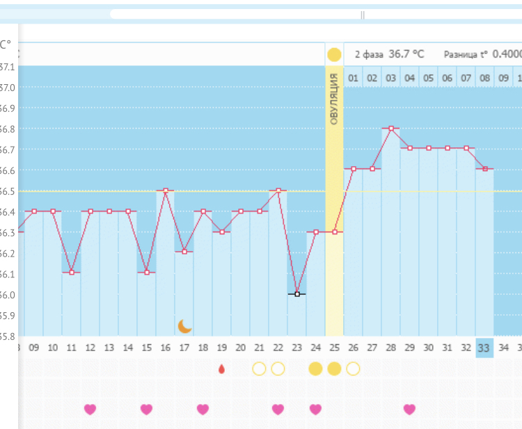 Можно ли предположить что овуляция точно была? Мне что то не вериться , это мой первый график. А на узи фолики не росли. Первая б на стимуляции. Яичники мултфоликулЯрные. Но не спкя . Он повышен. Инсулин снизила с 19,5 до 8. И вот такой график. Жду анализа на прогик.