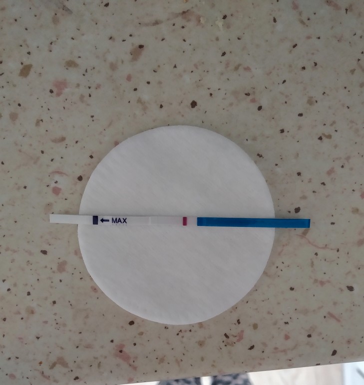 Больше похоже, что это реагент растекся уже после места, где полососка должна быть, к сожалению. Наблюдала такое на своих тестах тоже (эви, фрау). На некоторых она даже не исчезает, так хорошо окрашивает.