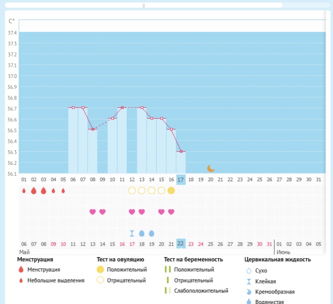 Приложу ещё график БТ, проснулась в 5:00 температура была 36,3, в 7:00 утра 36,7(но думаю в 7 уже не информативно)