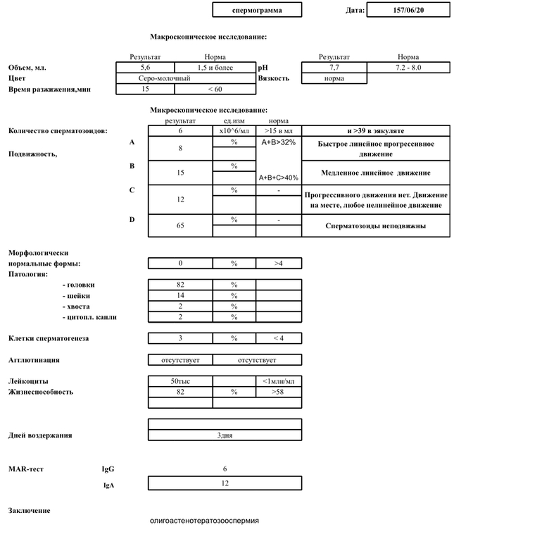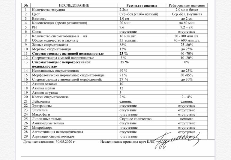 Андролог сказала что ЕБ при таких анализах вообще не рассматривается, эко или эко икси тоже, поскольку брать нормальный сперматозоид просто не из чего. Я пока не углублялась в тему эко, честно сказать, ведь даже предположить не могла что такая проблема у нас может существовать...Итогом, андролог отправила сдать анализы на гормоны+фрагментация ДНК, чтобы понять причину таких плохих анализов (мужу 29 лет, питание правильное, курит, но не так уж и много, в детстве ничем не болел). С анализом по фрагментации сложилась проблема, потому что куда не звонила, везде говорят-звоните после 15.06, карантин...и тут я разговорилась с родственницей и у них была похожая проблема, она посоветовала андролога Божедомова...мол езжайте туда, там и анализ сдадите, и на консультацию сходите....здесь читаю-как-то отзывы не очень....В общем, до 15.06 мне надо как-то решить-что делать дальше...?! К какому врачу идти, или возвращаться к первому андрологу в Витроклиник.?!?! Неужели действительно шансов на ЕБ нет?Неужели не возможно поднять показатели мужа с помощью лекарств?! ! Да что говорить, даже на эко и эко икси...?! Кто прошёл похожий путь и знает-что мне подсказать...так не хочется тратить время...впустую прикладываю анализы: