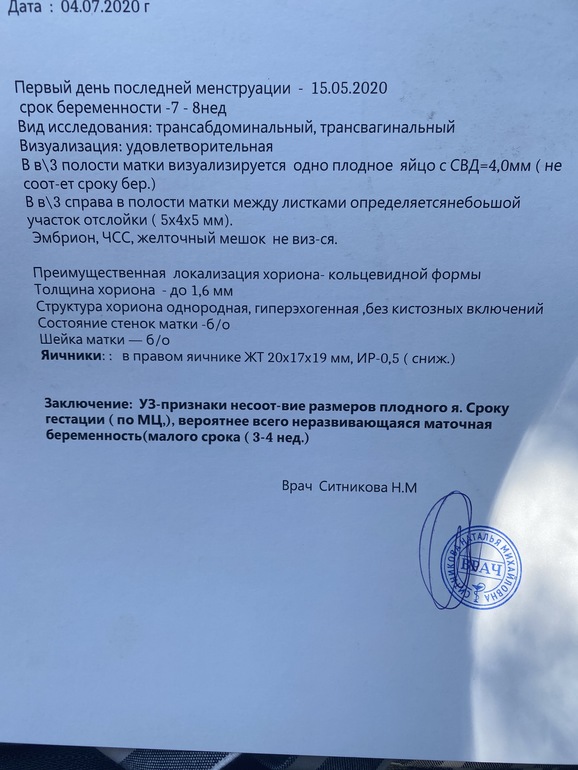 Так она и предположила что замерло все на 4 неделе, по размеру пя. Ничего не сдаю, буду ждать м и все.