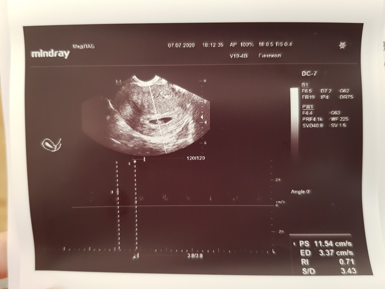 Это было с дочкой, а с сыном вообще в 6,1 нед так в протоколе и написали "ЧСС определяется слабо". Настолько слабо, что посчитать не смогли.